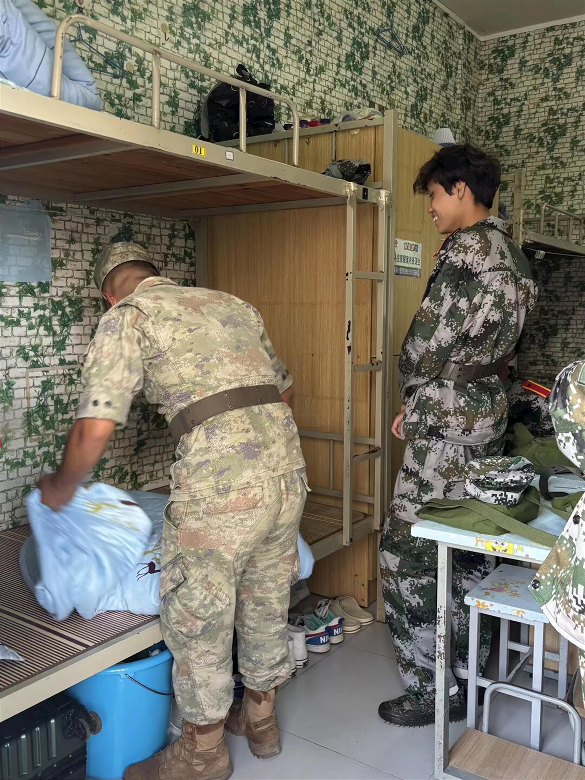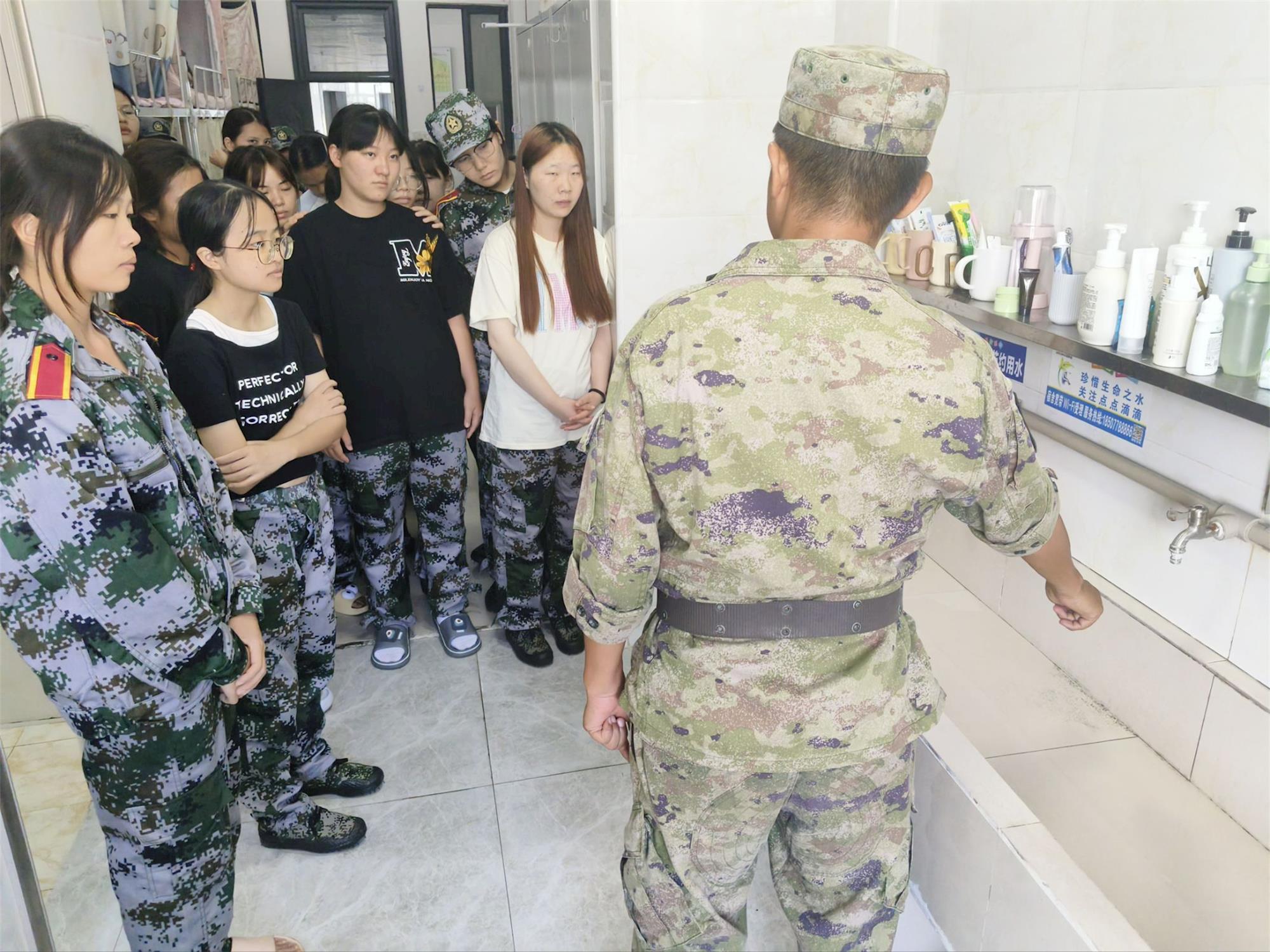 为落实“六会”进军训要求、深化“会律”能力培养,教师教育学院军训教官团队走进学生宿舍,开展宿舍内务“三精”卫生工程专项指导,以标准化、精细化要求助力新生夯实生活规范、涵养自律品格。“三精”卫生工程紧扣物品摆放精细化、卫生清扫精准化、日常维护精致化核心标准,指导现场,教官们从床铺整理、物品收纳、卫生清扫等环节入手,手把手示范“豆腐块”被子叠法,逐一规范洗漱用品、衣物的摆放间距与朝向,细致拆解墙角、桌面缝隙等卫生死角的清理技巧,针对新生初次独立整理内务的薄弱点,耐心纠正叠被不规整、收纳无逻辑等问题,同步强调“内务即作风、细节见素养”,引导新生理解规范背后的纪律内涵与自律价值。新生们专注观摩、围着教官请教收纳窍门,经指导,原本杂乱的宿舍焕然一新,方方正正的被褥排列整齐,洗漱用品形成统一直线,地面桌面洁净无杂物,尽显井然有序。此次内务指导是学校“三得六能九会”综合素质提升改革的生动实践,既通过具象化教学改善了宿舍环境,更以小见大让新生领悟自律真谛,下一步,教师教育学院将持续推进“三精”卫生工程常态化,以宿舍文明为切入点,常态化开展督导培训,助力学生在点滴细节中锤炼品格、全面成长。